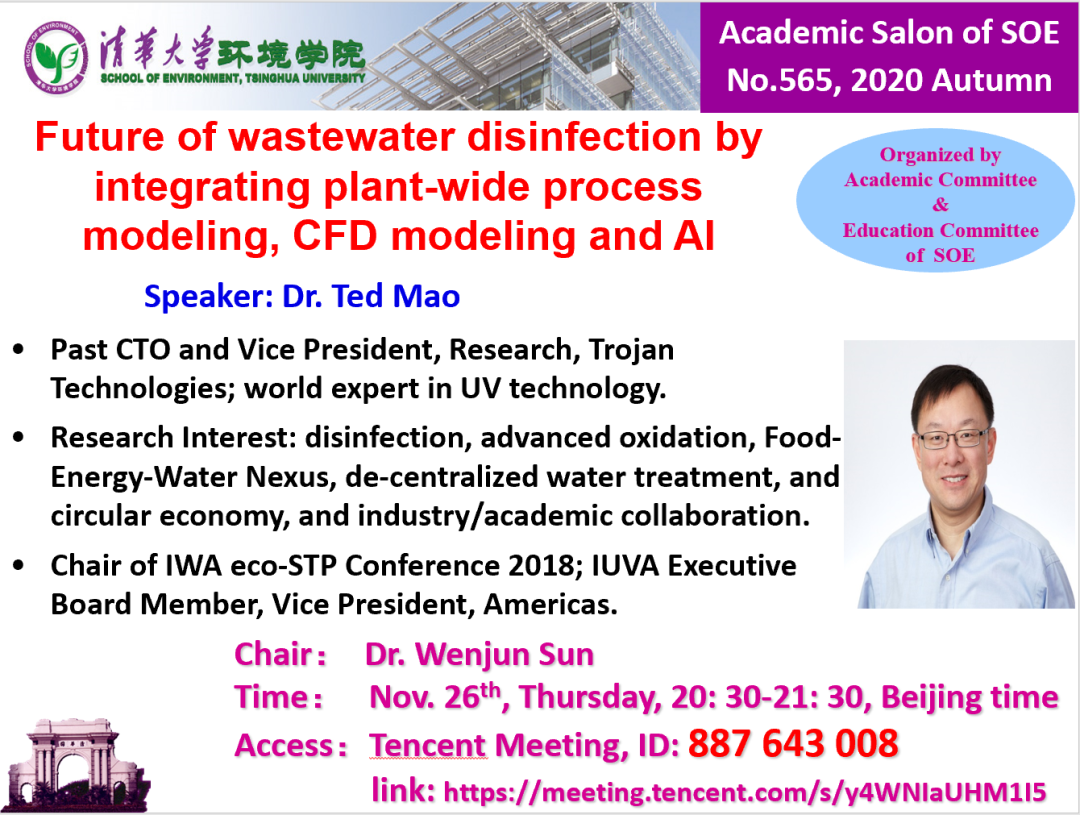 报告题目:Future of wastewater disinfection by integrating plant-wide process modeling, CFD modeling and AI