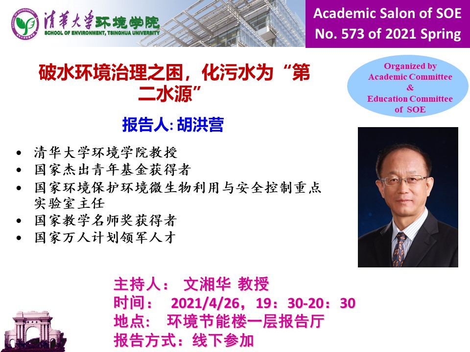 破水环境治理之困,化污水为“第二水源”主讲人:胡洪营 教授主持人:文湘华 教授会议时间:2020/4/26 19:30-20:30会议地点:环境节能楼一层报告厅