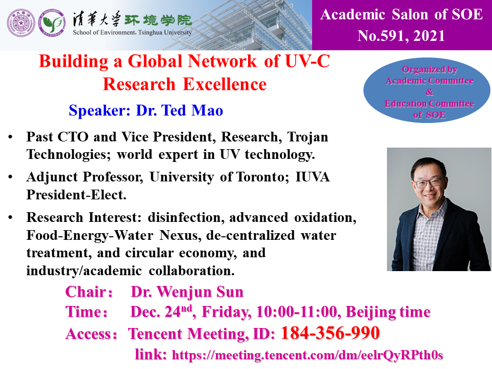 报告人:Ted Mao, Adjunct Professor, University of Toronto/ IUVA President-Elect