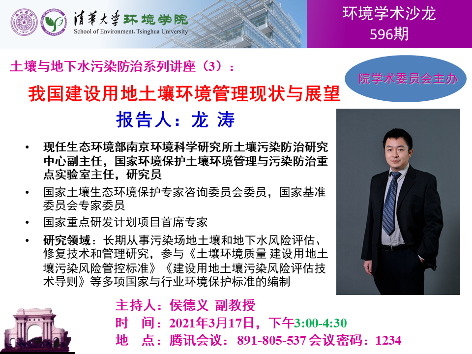 报告人:龙涛 生态环境部南京环境科学研究所土壤污染防治研究中心副主任,国家环境保护土壤环境管理与污染防治重点实验室主任,研究员