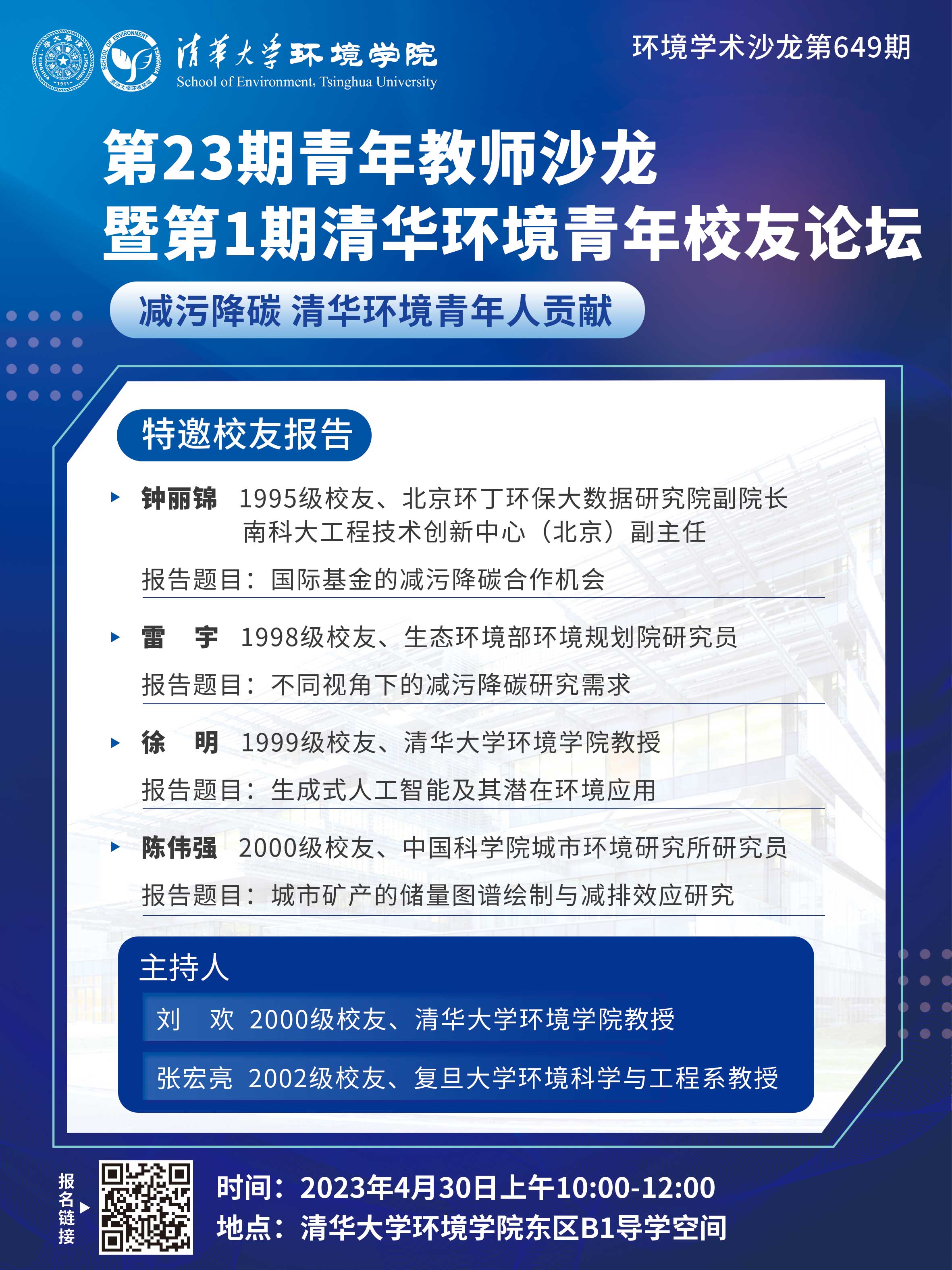 欢迎您参加第23期青年教师沙龙暨第1期清华环境青年校友论坛,本次活动纳入第649期环境学术沙龙,详见以下海报,谢谢!