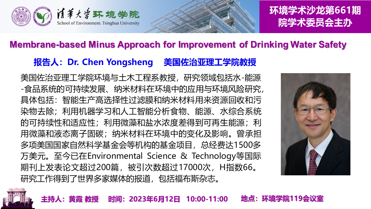 报告题目:Membrane-based Minus Approach for Improvement of Drinking Water Safety(基于膜技术做“减法” 提升饮用水安全)