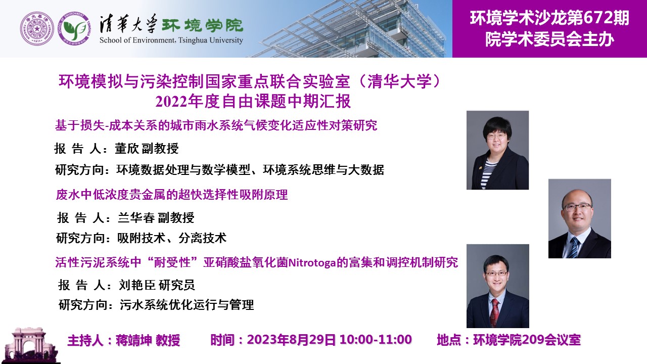 主题:环境模拟与污染控制国家重点联合实验室(清华大学)2022年度自由课题中期汇报