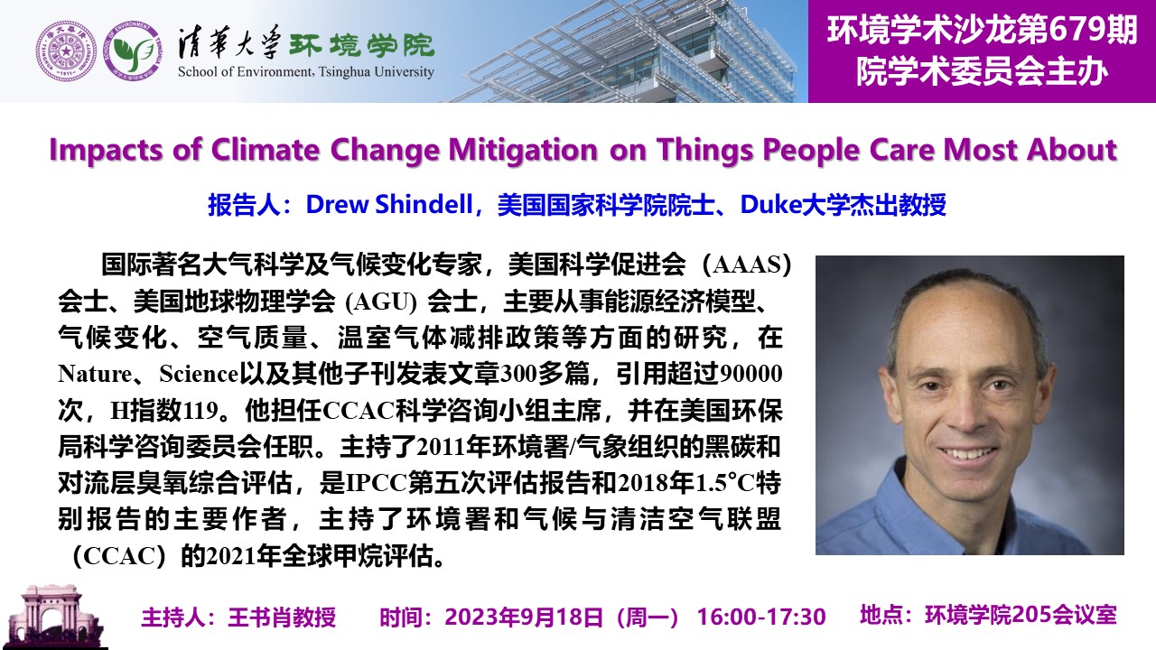 报告人:Drew Shindell,美国国家科学院院士、杜克大学杰出教授