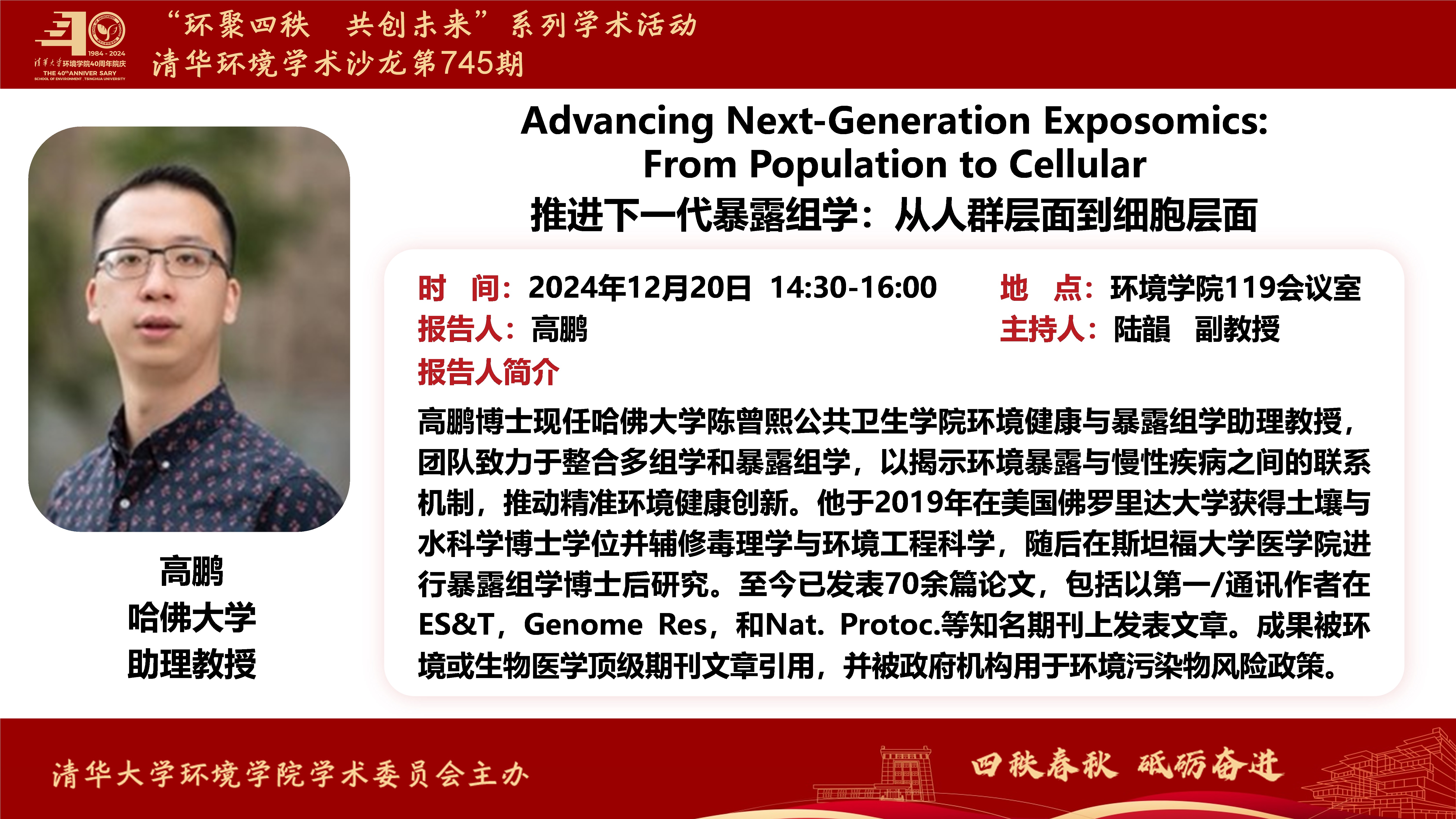 报告题目:Advancing Next-Generation Exposomics: From Population to Cellular/推进下一代暴露组学:从人群层面到细胞层面
