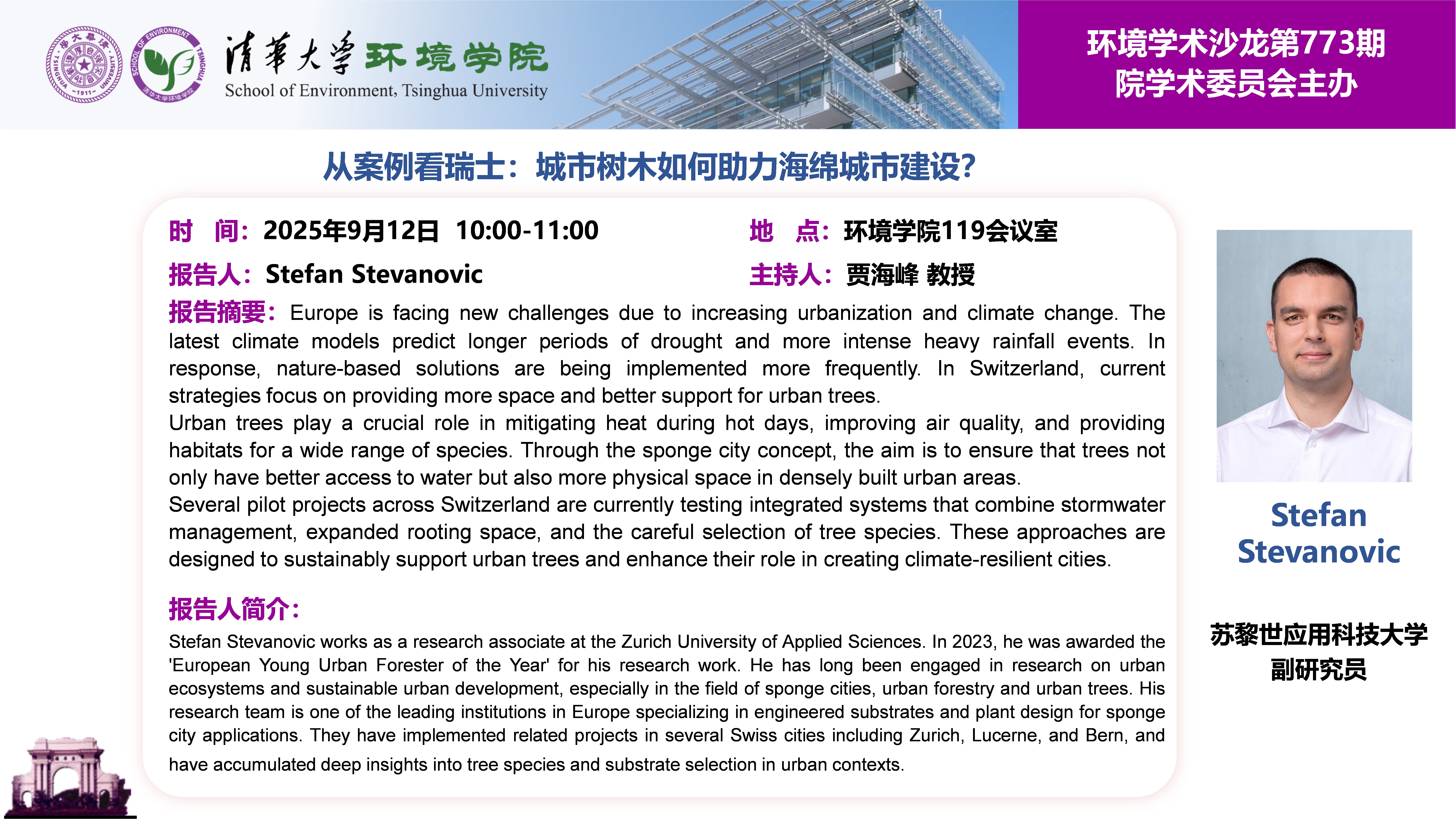报告题目:从案例看瑞士:城市树木如何助力海绵城市建设