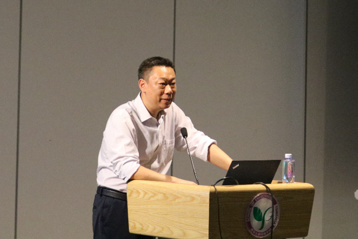 刘毅从环境专业出发,围绕“学习贯彻习近平生态文明思想”这一主题为同学们上了一堂内涵丰富的党课。刘毅指出,中国经济的快速发展对环境资源产生了巨大需求,我国正面临着资源、环境、能源等多重挑战,必须全面调整经济增长方式与生活方式,使之与资源环境相匹配、相协调,生态文明建设十分紧迫。通过回顾生态文明理念的发展历程和习近平总书记的环保情怀,刘毅为同学们阐述了习近平生态文明思想的基本内涵。随后,他向同学们介绍了环境学科特点和目标,使新生们对环境专业有了更加全面而系统的认识。