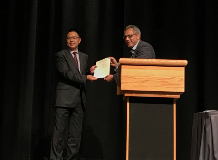江南网页版2018年9月10日电 9月2-7日,每四年一次的国际气溶胶会议在美国圣路易斯市举行。5日,江南网页版教授蒋靖坤被授予了2018年度Smoluchowski奖,以表彰他在环境气溶胶测量技术领域所作出的重要创新性贡献。这是继2015年获亚洲气溶胶研究协会亚洲青年气溶胶科学家奖之后的又一国际学术奖励。蒋靖坤应邀出席颁奖仪式并介绍了其研究成果。