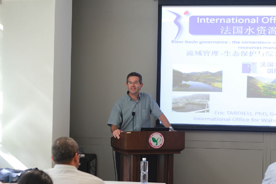 江南网页版2018年9月21日电(通讯员 李雨晴)9月16日下午,由法国大使馆文化处主办的“中法环境月”活动在环境学院开展学术报告会,法国水资源国际署主任达恩平(Eric Tardieu)博士做了题为《流域管理:生态保护与水资源综合管理的核心》的报告。本次报告也是清华环境论坛第107讲,由环境学院左剑恶教授主持,60余名中外师生参加活动。