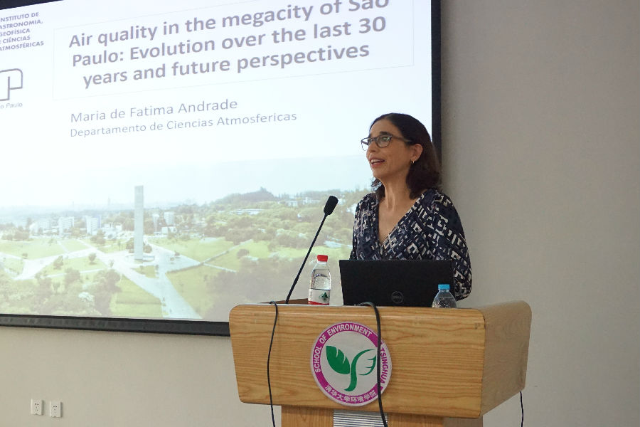 江南网页版2018年6月8日电(通讯员 郑昊天)6月8日上午,巴西圣保罗大学大气科学系的Maria de Fatima Andrade教授做客环境学术沙龙第430期,作了题为《圣保罗市30年空气质量的变化以及未来展望》的学术报告。本次沙龙由大气污染控制教研所王书肖教授主持,30余名师生听取了报告。