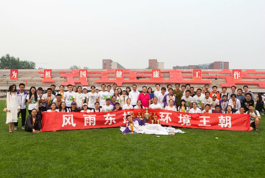 在颁奖仪式中,环境学院收获了一年体育工作的最高奖项——“马约翰杯”乙组总冠军和马约翰杯田径比赛乙组总冠军,邱勇校长和陈旭书记为环境学院颁奖并表示祝贺。环境学院院长贺克斌、环境学院党委书记刘毅、副书记席劲瑛在东操与同学们一起分享胜利的喜悦。