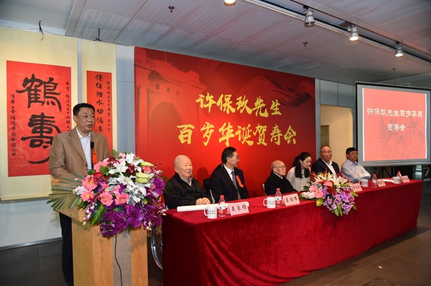 清华师生,各界校友,许保玖先生的学生、同事、朋友,环境保护与给排水等领域相关单位代表300余人欢聚一堂,共祝我国环境工程及市政工程领域著名学者、给水排水工程学科奠基人和开拓者之一许保玖先生百岁华诞。祝寿会由环境学院党委书记刘毅主持。
