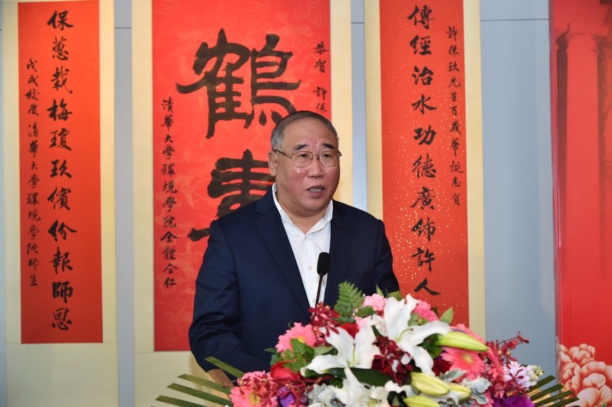 姜胜耀代表清华大学向许保玖先生百岁华诞致以诚挚的祝贺,并高度评价了许先生为我国市政工程和环境工程学科建设所做出的突出贡献。姜胜耀表示,许先生的学术人生是对清华大学“自强不息、厚德载物”校训的生动诠释。许先生的高尚品德、人格魅力、治学思想为建设“世界一流环境学科、世界一流清华大学”提供了有力的精神鼓舞。姜胜耀勉励年轻一代以许先生为榜样,把老一辈清华环境人开创的伟大事业推向新的高度,为清华大学的“双一流”建设事业、为我国的生态文明建设事业做出清华环境人的更大贡献。