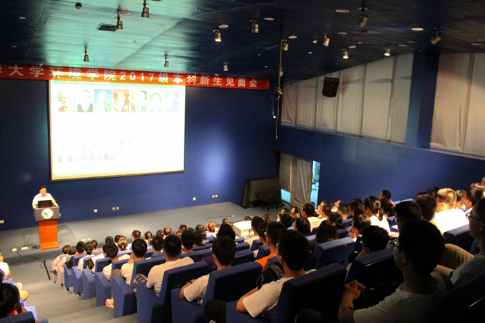 江南网页版2017年8月31日电 8月24日晚7点,环境学院七字班全体新生及部分家长来到环境节能楼报告厅,参加环境学院迎新见面会。环境学院钱易院士、院长贺克斌院士、院党委书记刘毅、院学术委员会主任黄霞、全球环境国际班责任教授余刚、清华大学研究生院副院长胡洪营以及环境学院副院长吴烨等近二十位老师来到现场欢迎新同学,院党委副书记席劲瑛主持见面会。