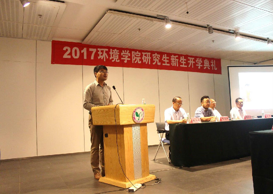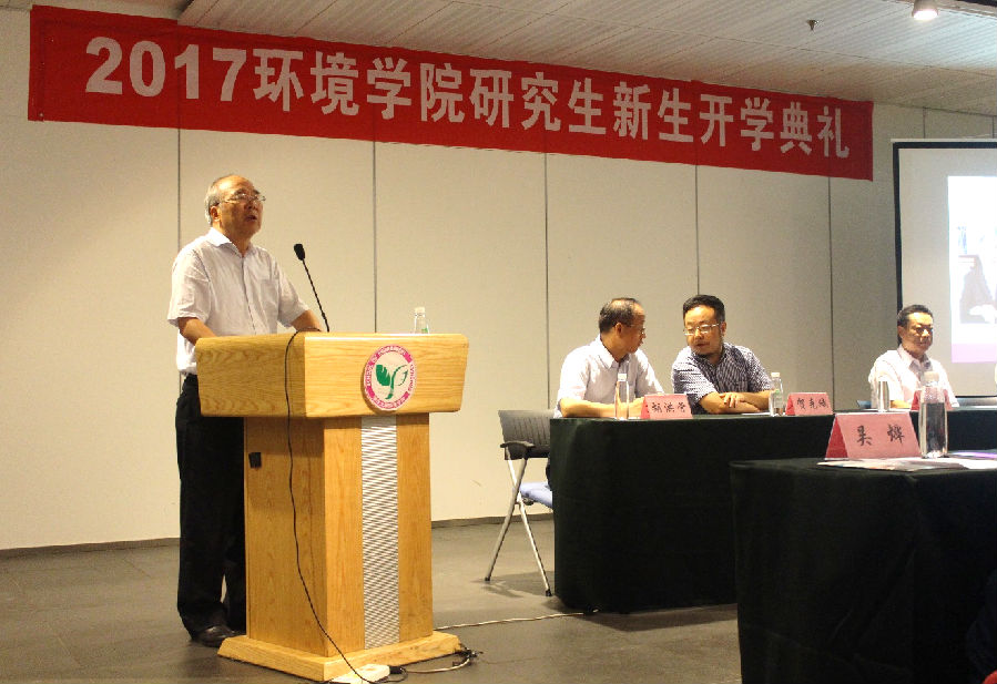典礼最后,贺克斌院长表达了对新生的寄语。贺克斌以近年来国家重大活动和突发性环境事故应急处置中环境学院师生发挥的作用为例,列举了环境工作者能为国家建设和社会发展作出的重要贡献。他希望同学们认真学习、踏实研究,树立远大志向,在建设生态文明、实现绿色发展的道路上抓住机遇,在未来的环境保护事业中大有所为。