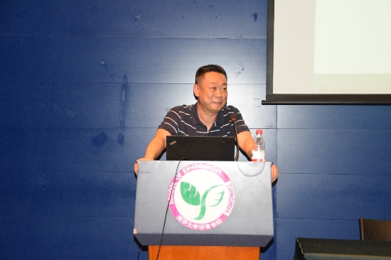 在报告中,刘毅首先指出,环境问题的产生与经济发展密不可分,中国经济高速发展和快速城镇化导致能耗、物耗大幅度增长,环境保护面临巨大压力。刘毅结合习近平总书记的多次讲话,总结了党的十八大以来国家的环境战略体系,指出“环境共同体、生态文明建设、环境治理纳入政府考核、两山论、五大发展理念”等概念和理念的提出,充分体现了党中央对发展和环境保护认识上的转变。在立法和行动方面,刘毅将气、水、土三个行动计划比喻为我国在环境保护上的三大战役。结合长江经济带保护、水环境治理、蓝天保卫战等实例,阐述了改善环境质量对实现“中国梦”的重要意义,也让大家切实感受到了环境保护的未来发展趋势。最后,刘毅谈到了未来环境人才应当承担的责任,同时结合环境学科的发展对新生们提出了期许。