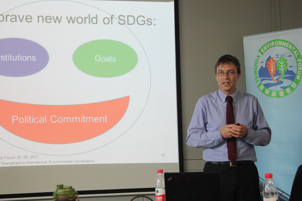 江南网页版2017年06月28日电?(通讯员 申佳悦)6月28日下午,瑞士环境大使、瑞士联邦环境办公室国际事务处主任Franz Xaver Perrez做客清华环境论坛第96讲,作了题为《国际环境管理:现状与未来》的学术报告。本次论坛由固体废物污染控制教研所教授、巴塞尔公约亚太区域中心执行主任李金惠主持,20余名师生听取了报告。