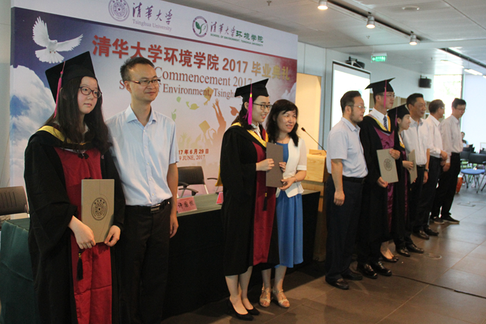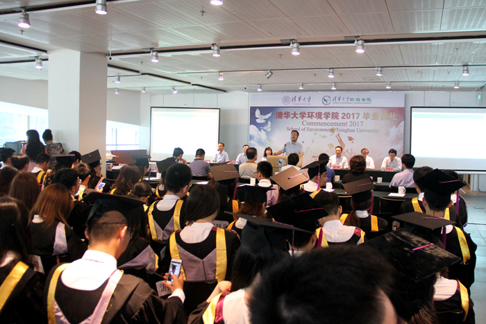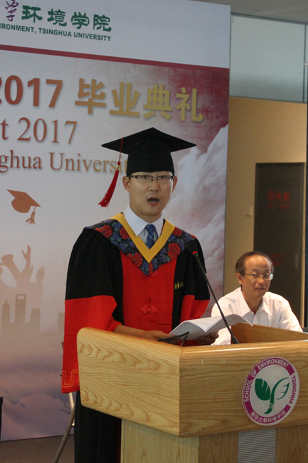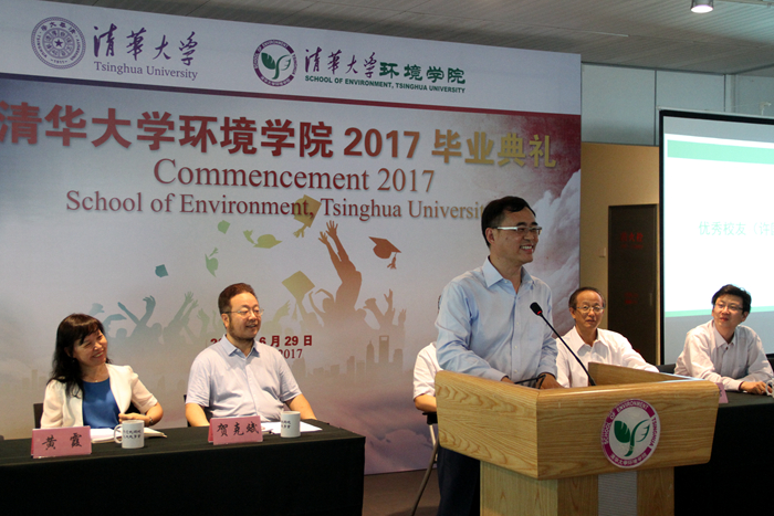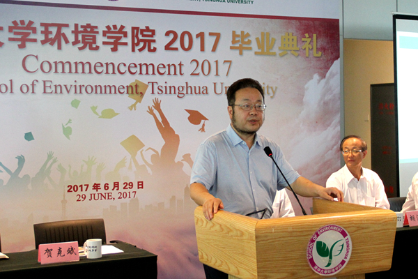 江南网页版2017年7月3日电(通讯员 高晓娟,郭凯迪)6月29日,江南网页版2017届本科生、研究生毕业典礼在环境学院东一厅举行。环境学院院长贺克斌、院党委书记刘毅,清华大学研究生院副院长胡洪营,环境学院学术委员会主席黄霞、副院长吴烨、党委副书记席劲瑛以及十余名教师代表出席典礼。230余名本科生和研究生身着学位服,在老师、亲友的陪伴下,为过去几年的求学历程画上了圆满的句号。毕业生郭香麟主持典礼。