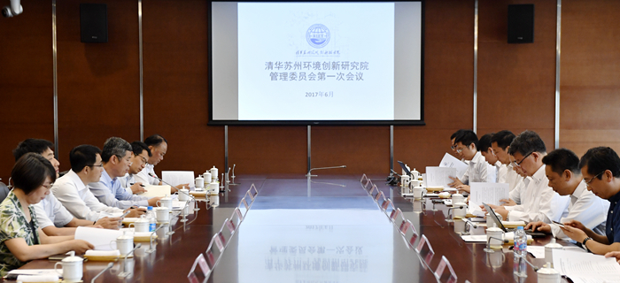 揭牌仪式后召开了清华苏州环境创新研究院管理委员会第一次会议,会议审议通过了环境创新院章程、年度工作计划等文件,聘任了环境创新院首席科学家和技术委员会委员。