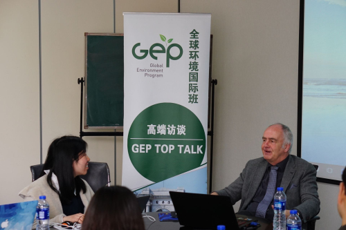 全球环境国际班同学正在访谈雅各布·波尔教授