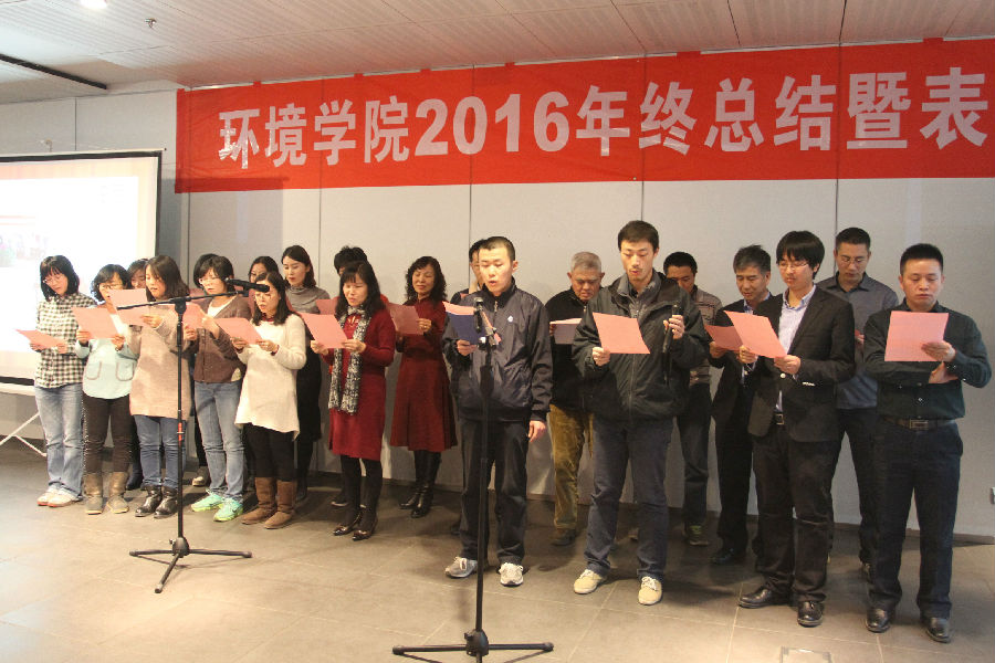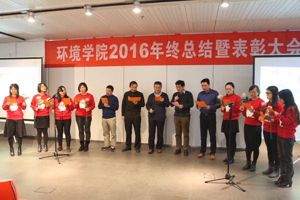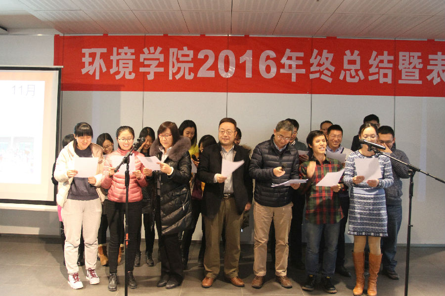 江南网页版2017年1月17日电(通讯员 高晓娟)1月16日下午,环境学院2016年终总结暨表彰大会在环境节能楼东一厅举行,100余名在职及离退休教师参加活动。