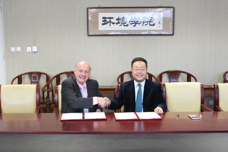 仪式结束后,贺克斌、孙傅与左律克一行就双方继续深化合作进行了座谈,并签署了“威立雅”奖学金第三期(2017-2019)协议。