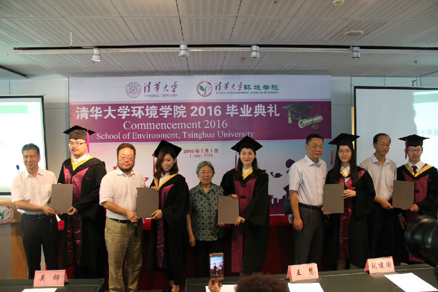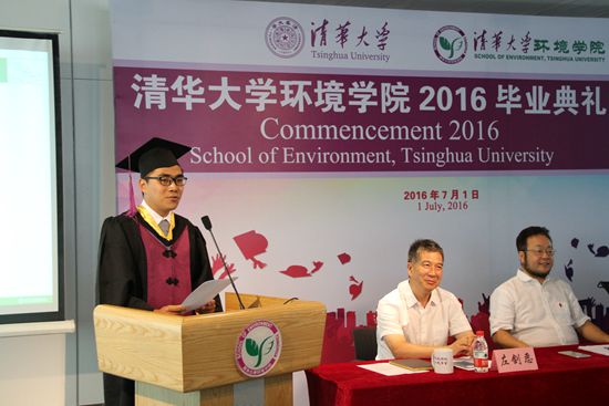 最后,贺克斌院长向全体毕业生表示祝贺,并感谢他们在学习期间为学院学科发展所做的贡献。贺克斌列举了环境学院最近15年毕业的杰出校友,他们在国内外学术界、政府管理部门、全球环境管理领域、产业界等做出了骄人的成绩。他说,随着国家陆续颁布“大气十条”、“水十条”、“土壤十条”等行动计划,环保事业已由过去发挥为国民经济保驾护航的作用,变为国民经济的主战场,希望清华环境学子向优秀的前辈校友学习,为环保事业贡献更多力量。