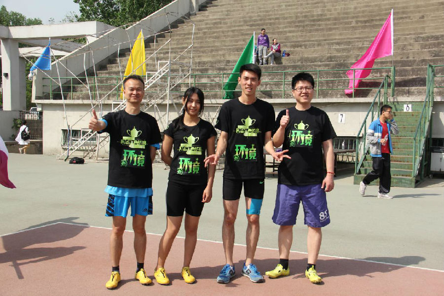 开幕式上,院党委书记刘毅带领环境学院方阵入场,运动员口号响亮、步伐整齐,赢得在场观众的喝彩。田径比赛在23-24日两天举行,赛前数周充分而科学的训练,使环境健儿们在比赛发挥出了最高水平,最终取得25金、9银、11铜的优异成绩,并获得男子800米、1500米、4*800米接力、五项全能,女子100米、400米、3000米、4*100米接力、4*400米接力、4*800米接力、跳远、铅球、三项全能、立定跳远、立定三级跳、实心球和师生异程接力等多个单项冠军。在师生异程接力比赛中,吴烨老师与李淼老师与两名同学默契配合,以绝对优势夺得冠军。全部比赛结束后,曾荣获清华大学健美操比赛总冠军的环境学院健美操队与机械、水利队献上了精彩的表演,引来阵阵欢呼喝彩。