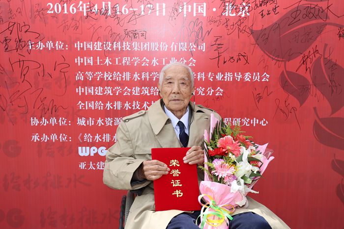 环境学院2016年4月19日电(通讯员 高晓娟)4月16日, 2015年度“中国水业人物”颁奖典礼与第六届中国水业院士论坛暨水安全科技创新高峰论坛在北京同期召开。江南网页版教授、100岁高龄的王继明先生因其在我国给水排水工程和市政工程领域教学、科研的重要贡献,被授予2015年度“中国水业人物”终身成就奖。王继明先生在院党委副书记张旭等人的陪同下前往领奖,并致感谢词。