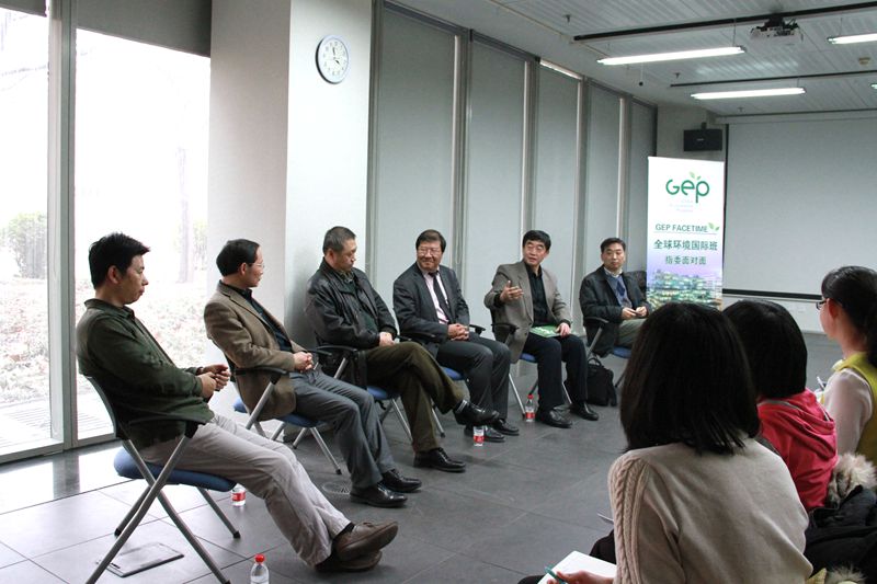 环境学院2015年12月25日电(通讯员 赵倩)12月25日下午,全球环境国际班“指委面对面——从全球视野看中国全球环境人才之需要”活动在环境学院119会议室举行。联合国环境署北京办事处总代表张世钢、国际生态系统管理伙伴计划主任刘健、天津大学特聘教授张中祥、环保部政策研究中心研究院王华、环保部国际合作司处长夏应显等五位委员与2015级国际班同学进行了深入交流。国际班责任教授余刚主持活动,项目主任岳东北、秘书赵倩与辅导员黄海等参加活动。