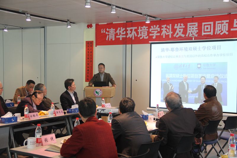 环境学院2015年10月28日电(通讯员 高晓娟)今年正值全校布局“十三五”学科发展规划,为全面回顾环境学院建院30多年发展历程,研讨和展望“十三五”学科发展前景,10月24日,环境学院在中意环境节能楼召开“清华环境学科发展回顾与展望”座谈会 。清华大学党委副书记李一兵,原全国人大环资委主任委员、原国家环保局局长曲格平,原清华大学党委书记方惠坚,中国工程院院士钱易,郝吉明和段宁,环境学院院长贺克斌等院领导,环境学院老领导及校友代表、师生代表40余人参加座谈。院党委书记刘毅主持座谈会。