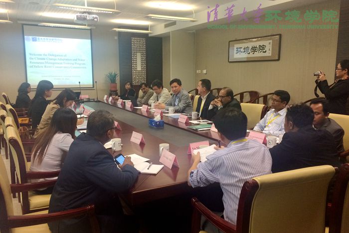 环境学院2015年10月20日电(通讯员 孙傅)10月16日下午,由清华大学亚太水安全研究中心(以下简称“中心”)协办的水利部黄河水利委员会(以下简称“黄委”)“气候变化适应与水资源管理”国际培训项目代表团访问环境学院。培训学员由来自东南亚各国水利、环境、资源等政府部门的11名官员组成。