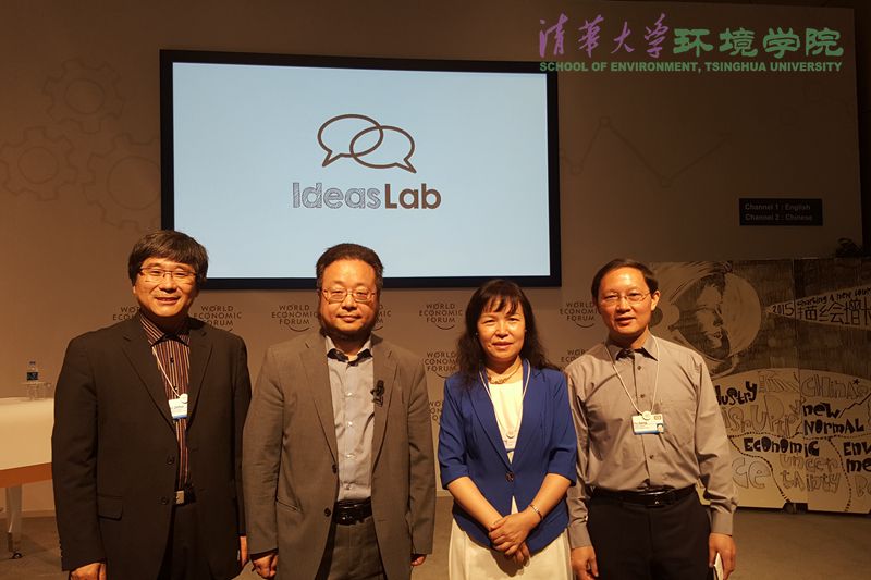 环境学院2015年9月11日电(通讯员 李金惠) 2015年世界经济论坛新领军者年会即夏季达沃斯论坛于9月9日至11日在大连国际会议中心举行。本届年会与清华大学合作组织了创想研究室——清华大学治理污染专场。环境学院院长贺克斌教授及黄霞教授、李金惠教授、余刚教授作为专场嘉宾,分别就雾霾治理、污水资源能源化、电子废物回收、新兴污染物控制等四个方面做专题报告并进行讨论。Nature杂志执行主编兼中国办公室首席代表尼克·坎贝尔(Nick Campbell)博士主持该专场报告。