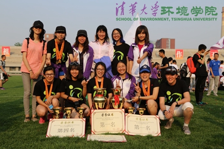 环境学院2015年5月6日电4月26日下午,清华大学第58届“马约翰杯”学生田径运动会在东操完美落幕。在两天的比赛中,环境健儿们驰骋赛场,顽强拼博,取得了骄人的成绩,不仅成功卫冕本届田径运动会乙组男女团体总分冠军,并历史性地实现女团总分十一连冠!