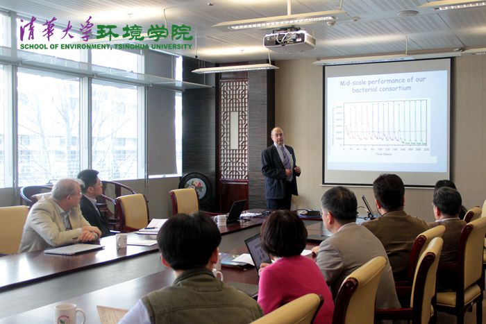 贺克斌首先对来宾到访表示欢迎。左剑恶介绍了学院总体情况,重点介绍了在人才培养方面开展的国际合作项目。汤普森教授代表牛津大学圣艾德蒙学院表达了与我校开展学生交换项目的意愿。双方围绕工业废水处理、生物质能源、环境生物修复、大气污染控制等各自研究领域进行了充分交流,并深入探讨了开展师生互访、合作研究以及双学位项目的可能性。