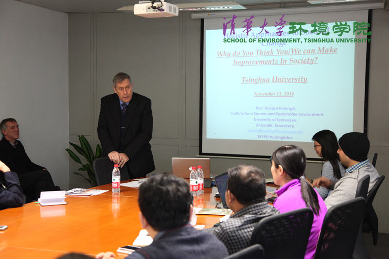 环境学院11月15日电(通讯员 赵雪皓)11月11日上午,《清洁生产》(The Journal of Cleaner Production)杂志创始人兼主编、美国田纳西大学(University of Tennessee)教授唐纳德•惠辛(Donald Huisingh)作客环境沙龙205期,作了题为《社会变革全面观:为什么我们可以让社会进步》(Holistic Approaches to Societal Change:Why do You Think You/We can Make Improvements In Society?)的报告。环境学院系统分析教研所刘毅教授主持了此次沙龙。