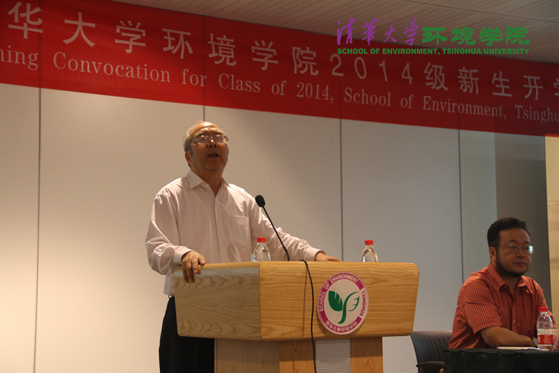 郝吉明院士在发言中勉励大家努力做一名合格的、优秀的清华环境人。郝吉明向新生提出四点希望。第一,充分认识肩上的历史责任。环境问题是一个全世界共同的大问题,90%人类生活的空气质量不能达到世界卫生组织标准。对于中国而言,中国工程院曾得到结论“中国的环境问题世界上最复杂,中国的污染状况世界上最严重,解决起来世界上最难”,环境人应勇挑重任。第二,珍惜在清华大学的学习机会,在学习书本知识的同时,应努力提升自学能力、创新精神以及语言表达能力。第三,拥有健康的体魄,做到为祖国健康工作50年。第四,建设优质班集体。