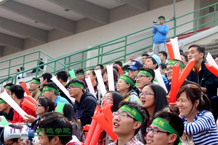 图为环境学院师生到现场呐喊助威