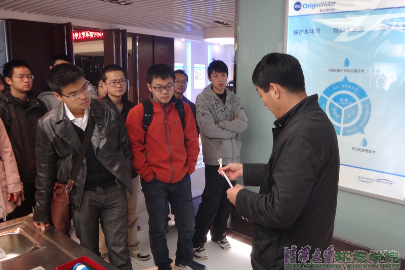 图为碧水源公司经理为同学们讲解公司主要产品技术。