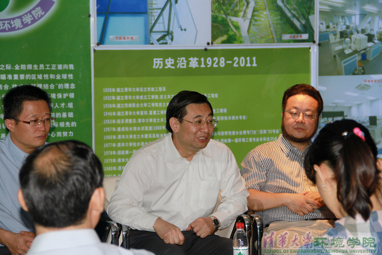 图为胡和平与环境学院教师交流。苏珍爱 摄