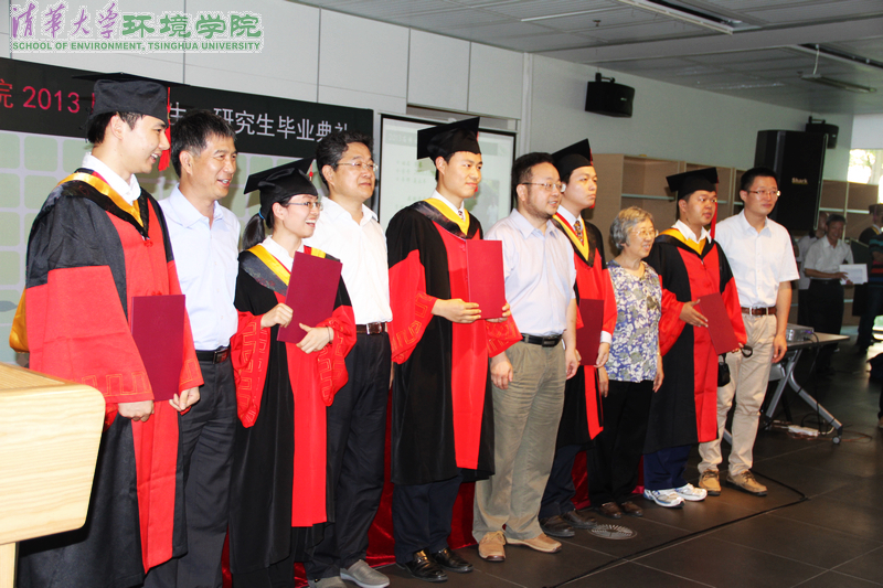 清华环境学院7月16日讯 (记者 苏珍爱) 7月16日下午,环境学院2013届本科生研究生毕业典礼在环境节能楼东一厅举行。近200名毕业生身着学位服参加了仪式。环境学院教授、中国工程院院士钱易,院长贺克斌,院党委书记杜鹏飞,副院长左剑恶、段雷,党委副书记刘文君、刘建国,院长助理王玉珏等出席毕业典礼。左剑恶主持毕业典礼。