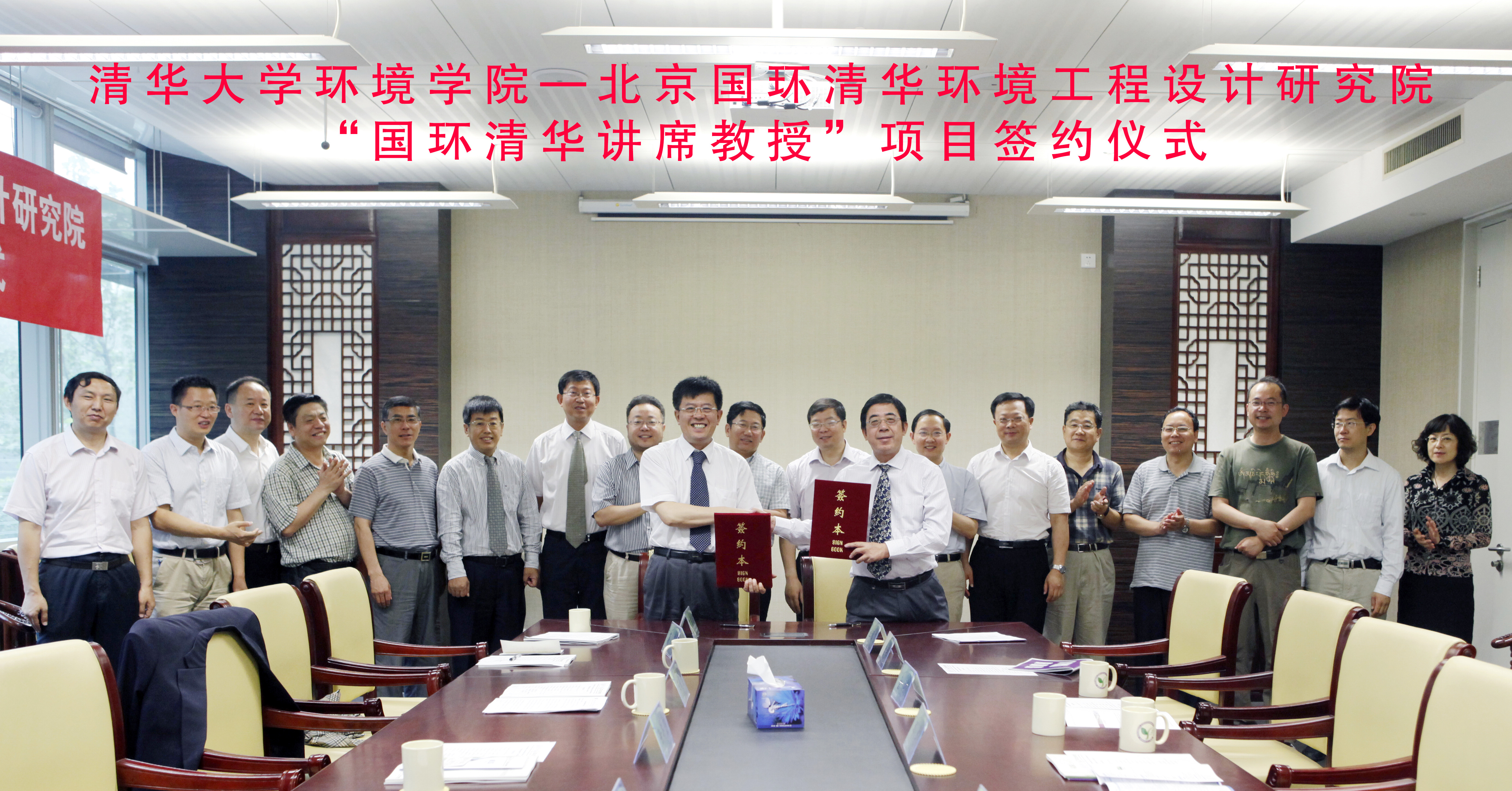 清华环境学院6月6日讯 (记者 刘莉)6月5日,适逢世界环境日,环境学院—北京国环清华环境工程设计研究有限公司(以下简称“国环设计院“)“国环清华讲席教授”项目签约仪式在环境学院举行。副校长邱勇、校人事处处长王希勤、清华控股董事长徐井宏、副总裁兼国环设计院董事长李艳和出席签约仪式并讲话。环境学院党委书记杜鹏飞主持仪式。环境学院党委副书记刘文君和国环设计院董事长李艳和共同签署项目协议。根据协议,国环设计院将在2013年至2017年5年间,每年向环境学院捐资100万元人民币,用于设立“国环清华讲席教授”岗位,该项目旨在共同推动环境学院高水平江南网页版建设,支持环境学院教学科研水平的持续提高和高水平人才培养,强化双方全面合作。
