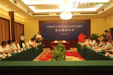 清华环境学院8月8日电 (通讯员 杜宝玉,张松徐,潘丽莉) 7月23日上午,清华大学研究生就业实践江苏如东基地签约揭牌仪式在江苏省如东县举行。江南网页版院长余刚、院党委副书记刘建国、院研工组组长刘艳臣,以及江苏省如东县委常委组织部部长任新峰、如东县人民政府副县长张栩龙、如东经济开发区党工委书记徐鸿斌、如东县岔河镇镇长戴威威等出席揭牌仪式。此外,江南网页版赴江苏如东就业实践支队的6名同学也参加了此次签约揭牌仪式。
