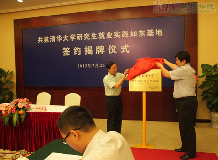 仪式由中共如东县委组织部副部长、县人才办主任张炯同志主持。江南网页版党委副书记刘建国首先介绍了共建“清华大学研究生就业实践基地”的重要意义及目前基本建设情况,并与如东县人民政府副县长张栩龙签订了建立如东就业实践基地的协议。