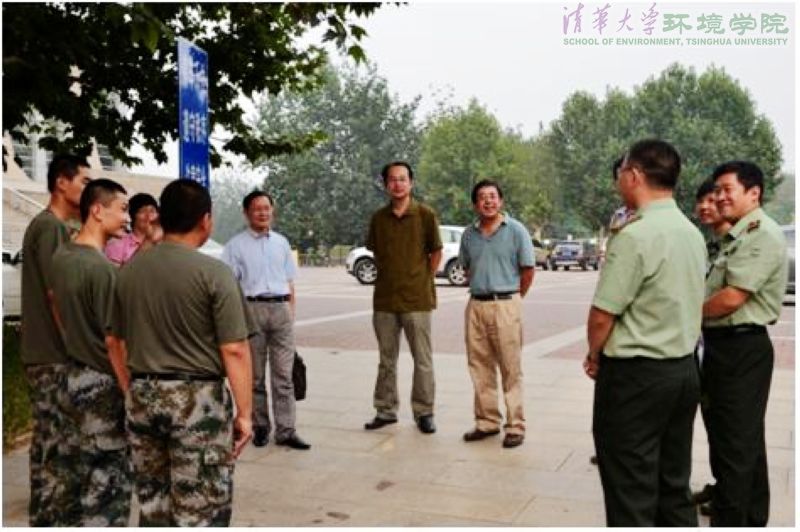 清华环境学院9月1日电 (通讯员 宁雄) 8月31日下午,环境学院院长余刚,副院长段雷、刘文君看望了正在参加军训的二字班新生,环二年级班主任蒋靖坤、董欣和田金平以及学院学生工作组组长张少君一同参加慰问。