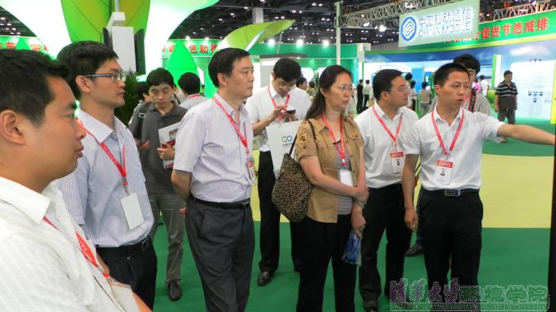 图为工信部领导到环境学院展台参观。
