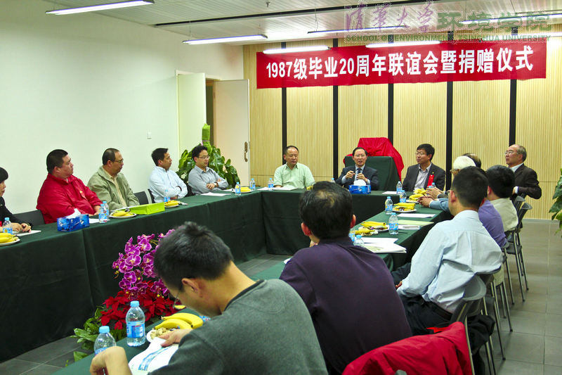 清华环境学院5月5日电 (通讯员 邓华元) 4月29日下午,环境学院1987级校友毕业20周年联谊会暨捐赠仪式在中意环境节能楼东厅122会议室举行。环境学院院长余刚、副院长左剑恶以及1987级同学的任课教师俞珂、陆正禹、郝吉明等出席联谊会。环境学院1987级校友20余人参加了联谊会。1987届校友、环境学院教授汪诚文主持联谊会。