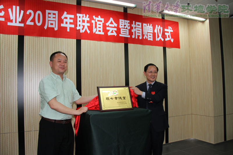 会上,环境学院院长余刚介绍了环境学院的发展现状与未来的发展方向,并与1987级校友代表共同为捐赠的“环七会议室”揭牌。