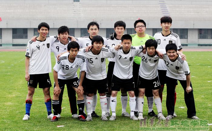 图为环境学院男足捧杯合影。