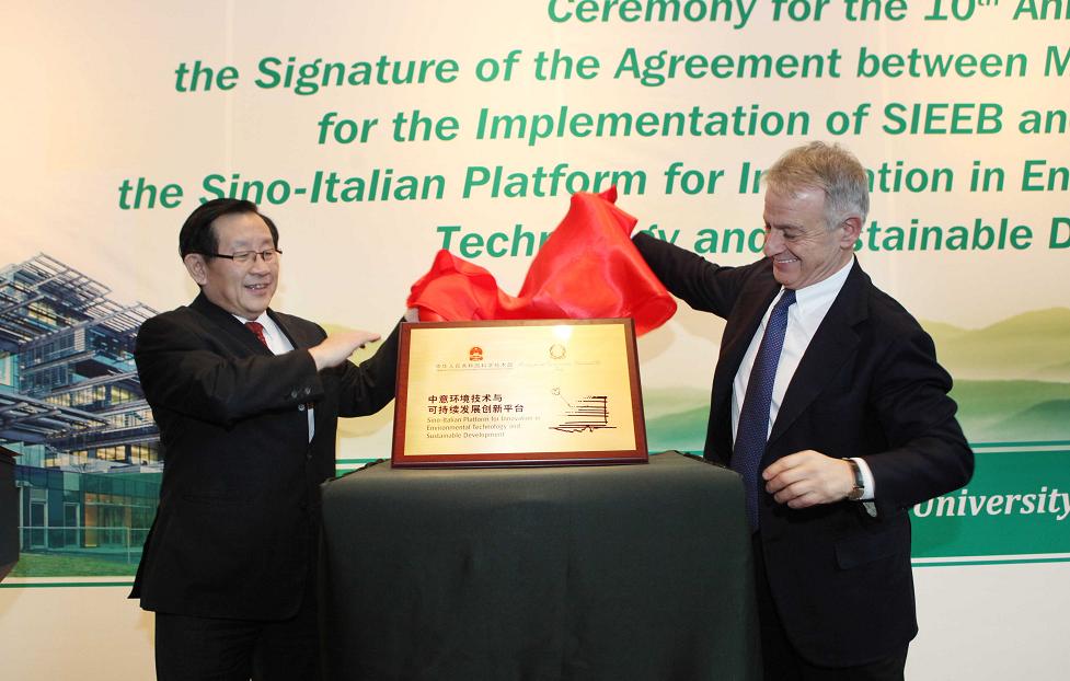 万钢部长和克里尼部长共同为中意环境技术与可持续发展创新平台揭牌